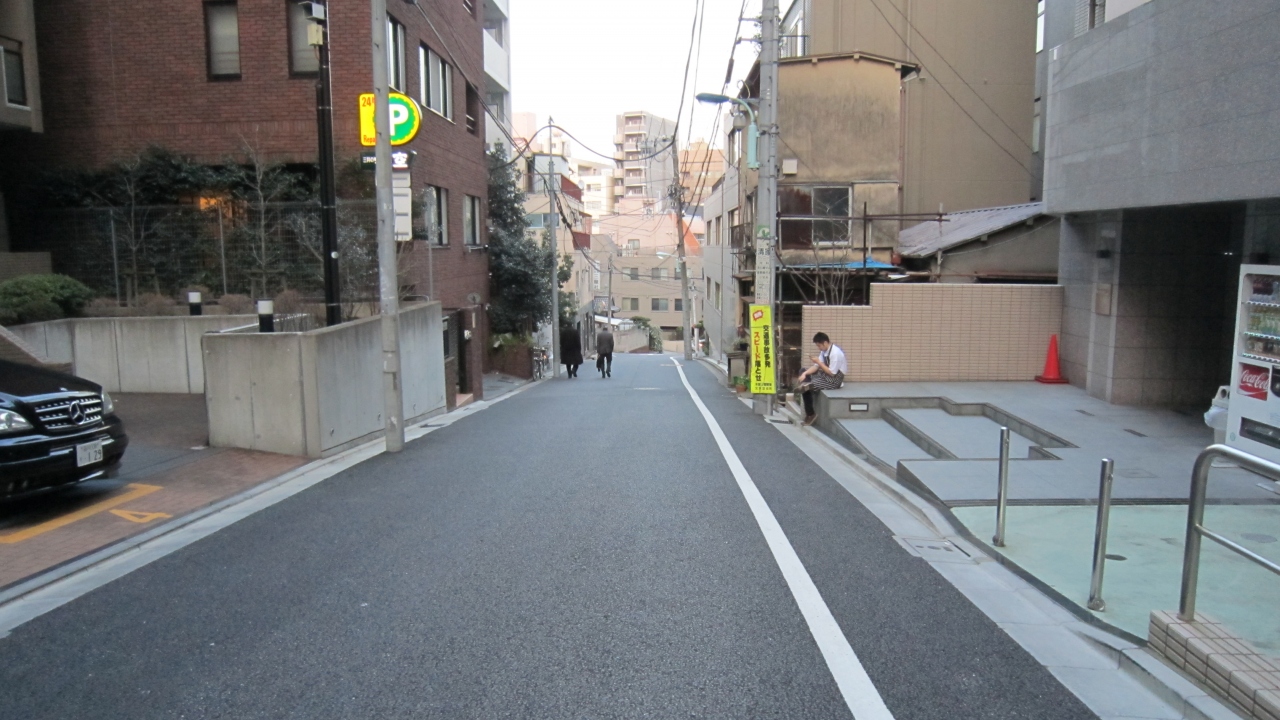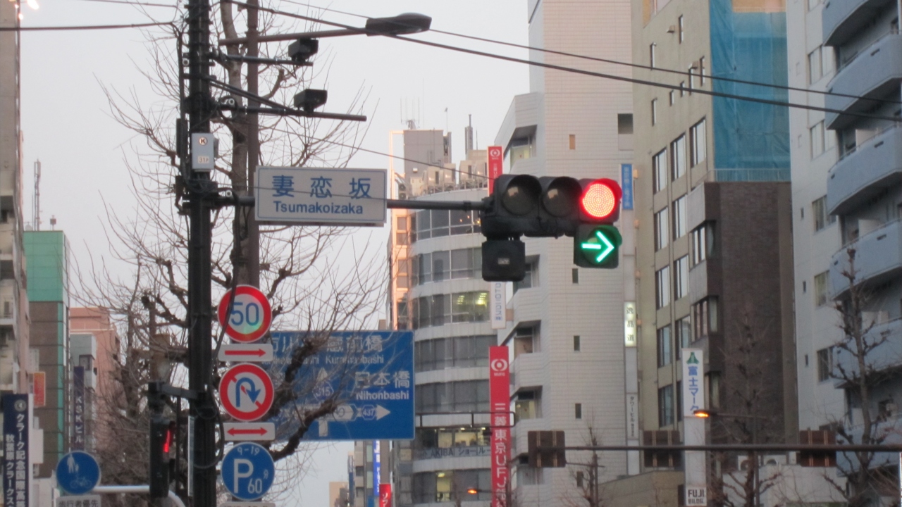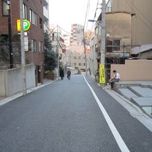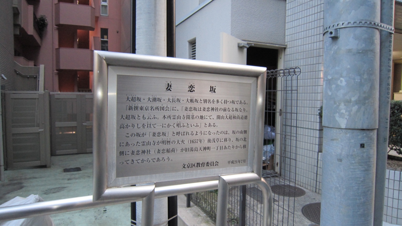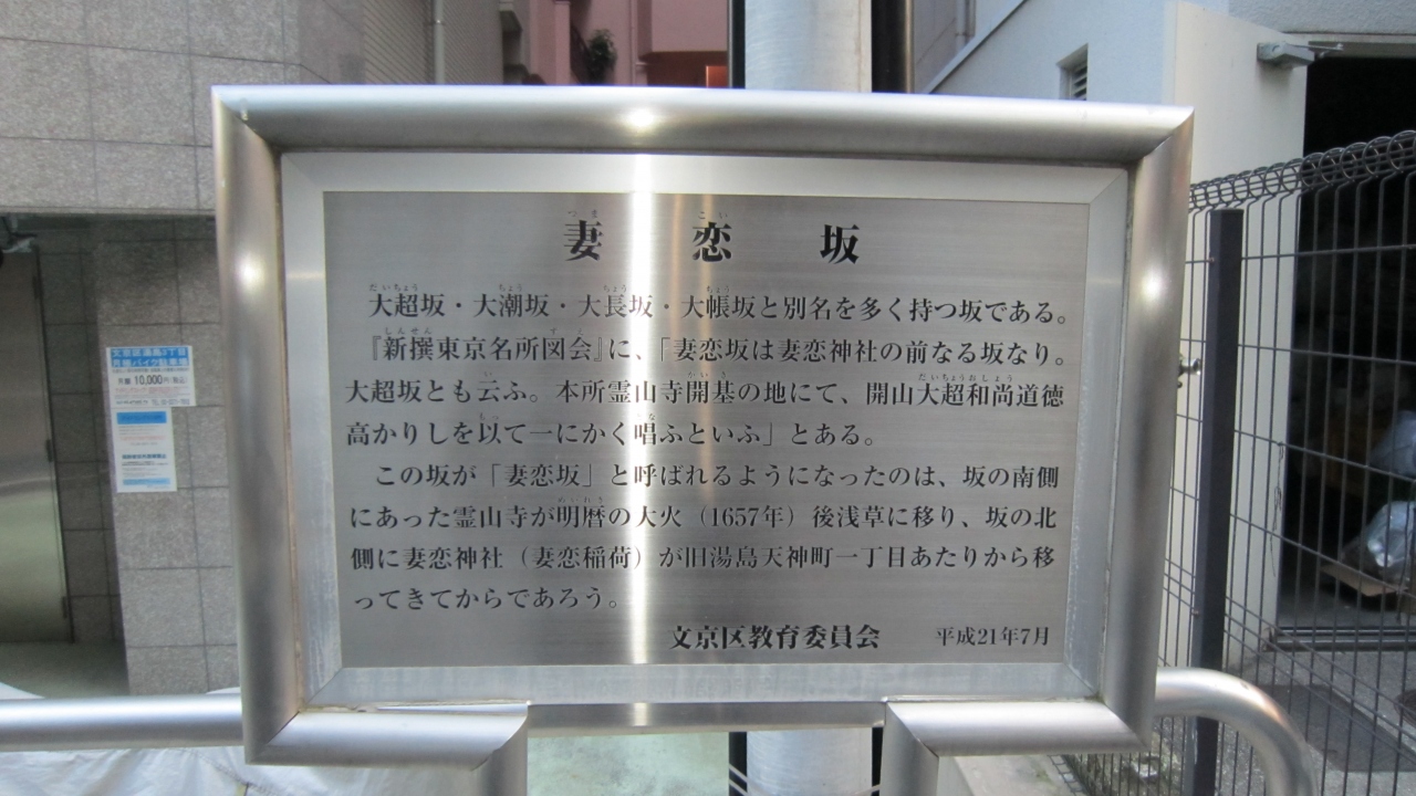 妻恋神社の前を蔵前橋通りに並行しているなだらかな坂道。案内板によると、「坂の南にあった霊山寺が1657年の大火の後に浅草に移り、妻恋神社が移ってきた」とあります。霊山寺は四国遍路の1番札所として有名ですが、同名寺もあるのだと思いました。都会のど真ん中ですが、人通りも少なく静かな通りです。