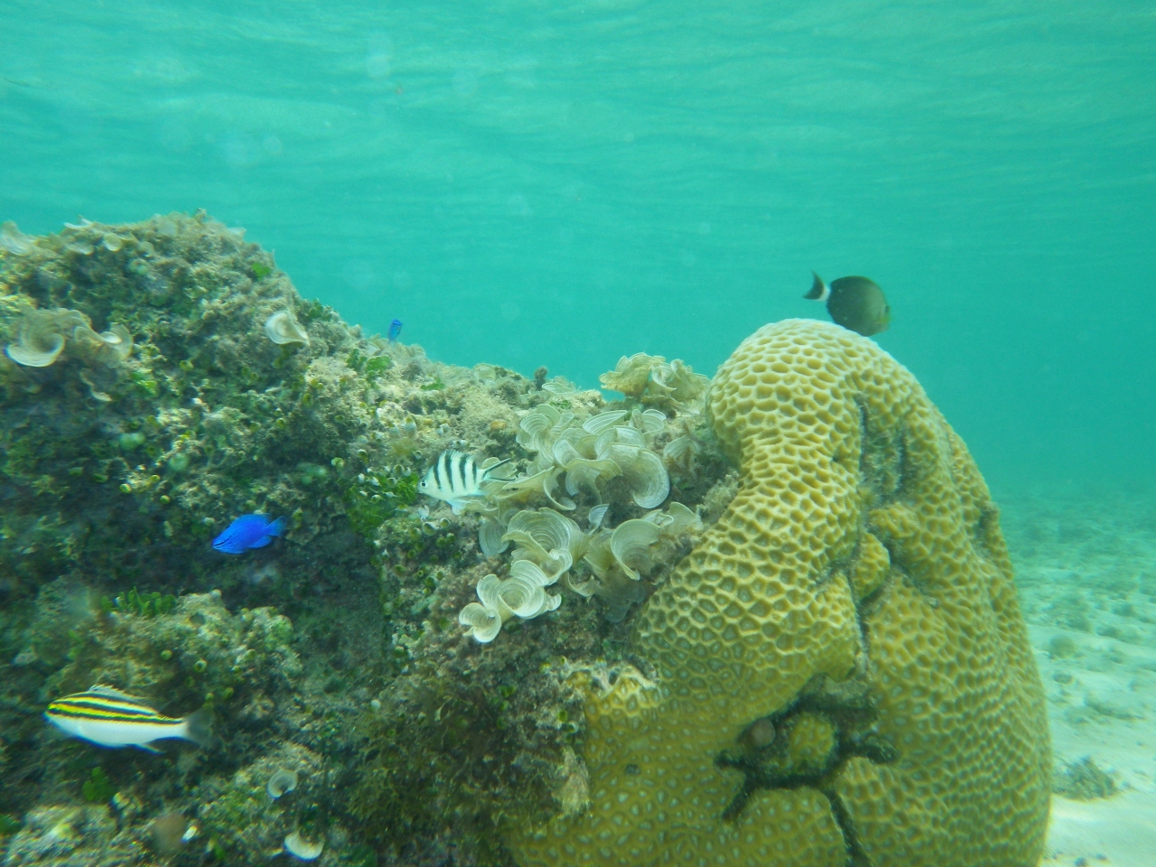 透明度も良く、浅瀬でも魚がいるので、気軽にシュノーケルが楽しめます。