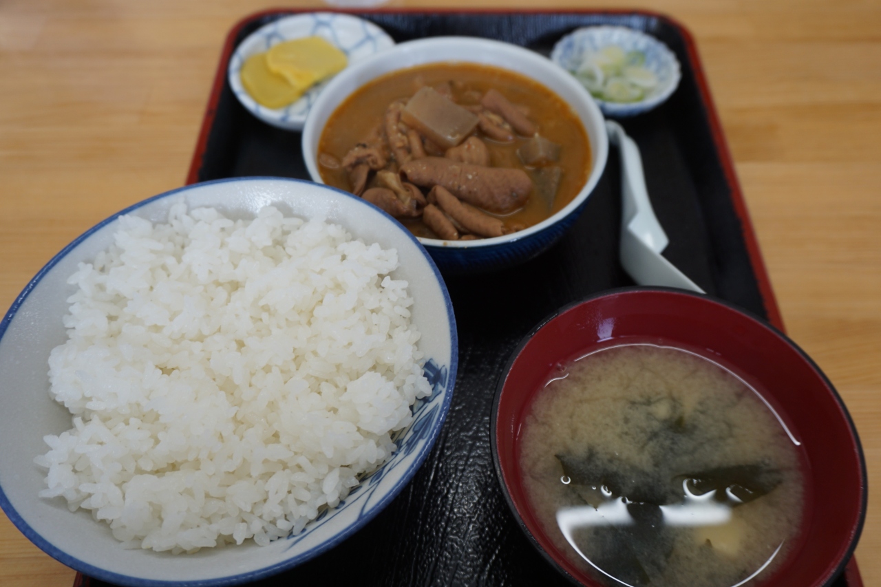 永井食堂は、最近はマスコミでも露出度が上がった超有名なモツ煮込み定食のお店。土曜日のお昼近くでしたが、長い行列が出来ていました。けっこうスパイスが効いた煮込み汁がとっても美味。これにおしんことみそ汁が付いただけのシンプルな定食ですが、メインのモツ煮込みが深い味わいなので、いろんなおかずを食べたみたいに豊かな気分になれました。さすが人気のお店です。
