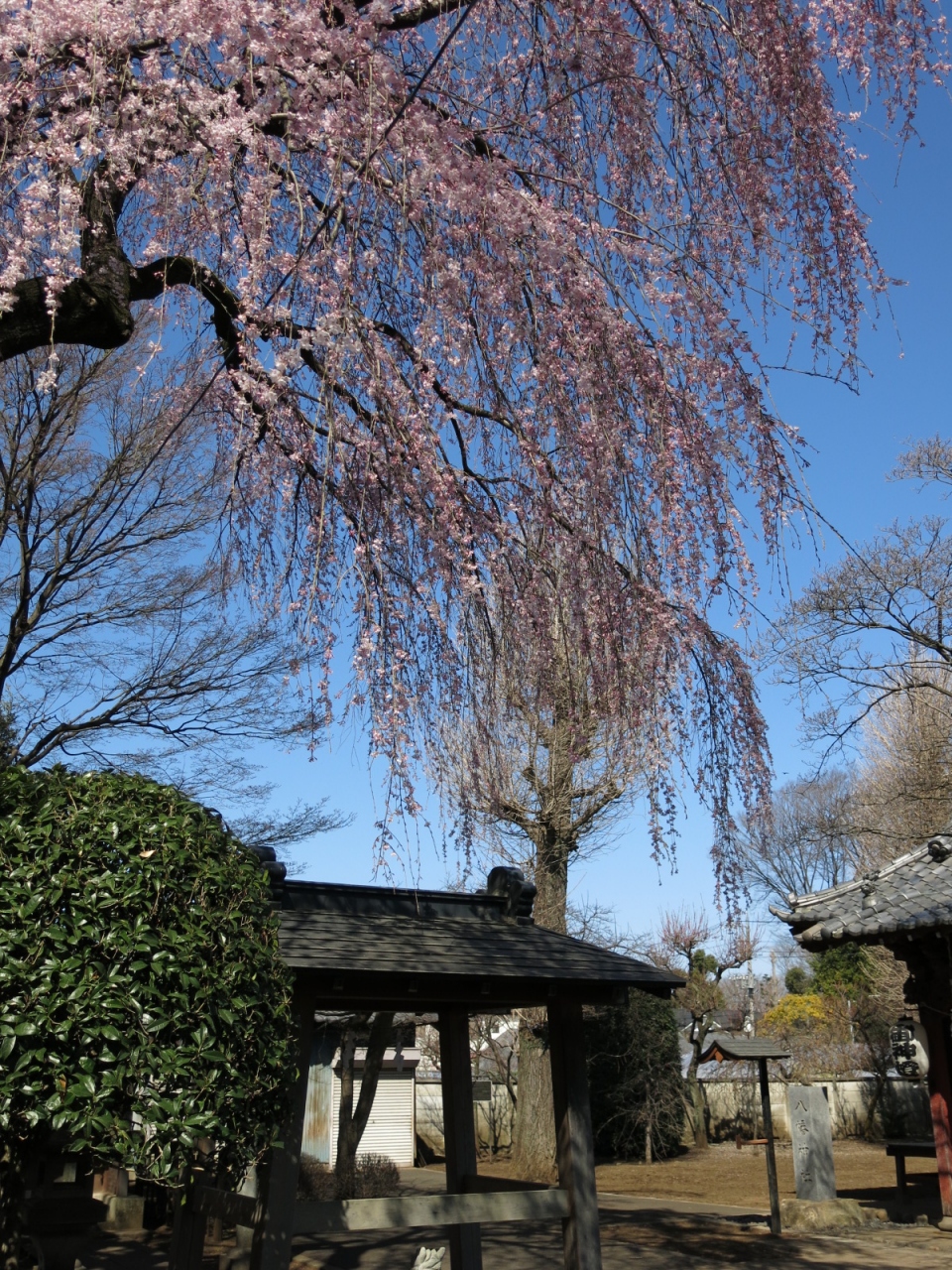 小金井公園に行く途中、小さな鳥居の横に、綺麗な「しだれ桜」が咲いていたので、立ち寄ってみました。誰もいない境内に静かに咲く「しだれ桜」。通りの騒音もあまり聞こえず、静かに春のひと時を過ごせました。説明看板によると創建は1724年とのことです。追伸:小金井公園の桜より早く咲いていましたよ。