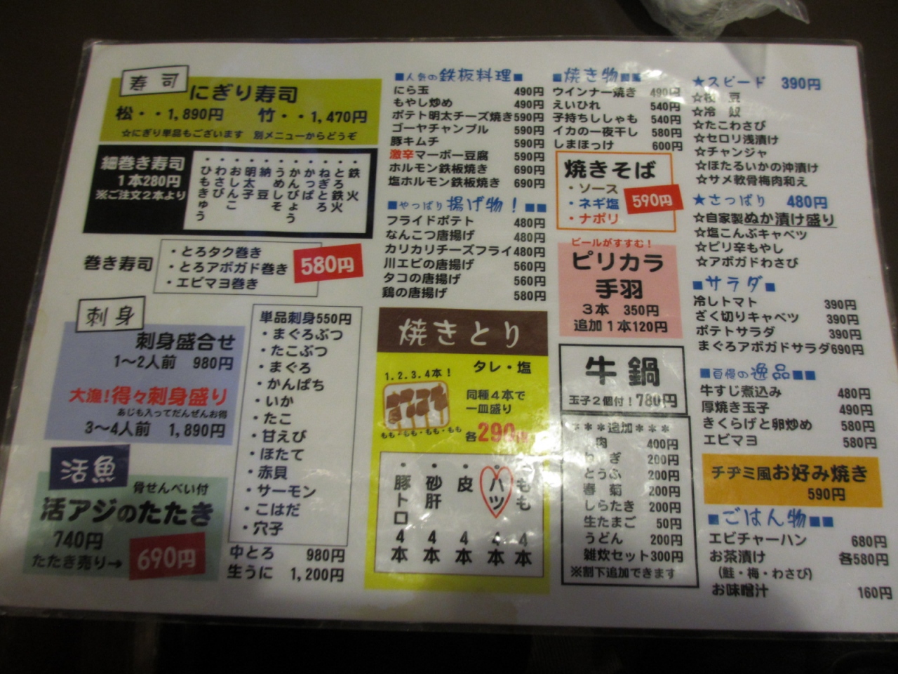 生ビールとハイボールは180円と格安でありがたいお店です。つまみは量と質を勘案すればそれほど安いというわけではないと感じました。
