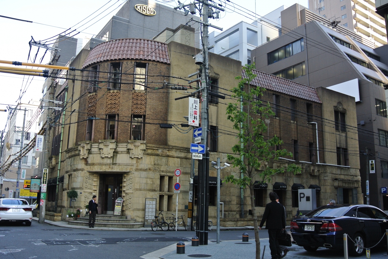 今は角地であっても角に出入り口を持ってくることはあまりありませんが、この建物は道路に面した角を正面玄関にして、そこに凝った意匠を張り巡らしているので、そのデザインがよりいっそう強烈な印象をもたらしています。以前はすぐ隣に和館のような建物もあったように記憶していましたが、それはなくなっていました。