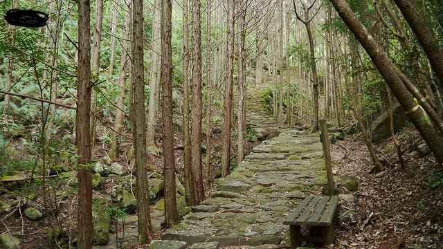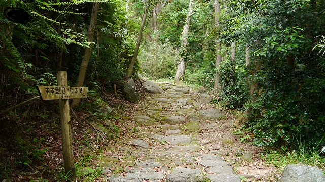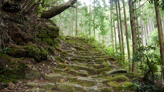 紀勢本線熊野市駅と大泊駅の間に位置する熊野古道のコース。それぞれの駅から古道入口までは約20分。約2時間もあれば歩ききれるので比較的容易に歩けると思う。石畳道がよく残されていて、雰囲気も良い。眺望は森の中のためあまりないが、松本峠から鬼が城へ至るコースに立ち寄ると七里御浜や熊野灘がみられるポイントにたどり着くことができる。