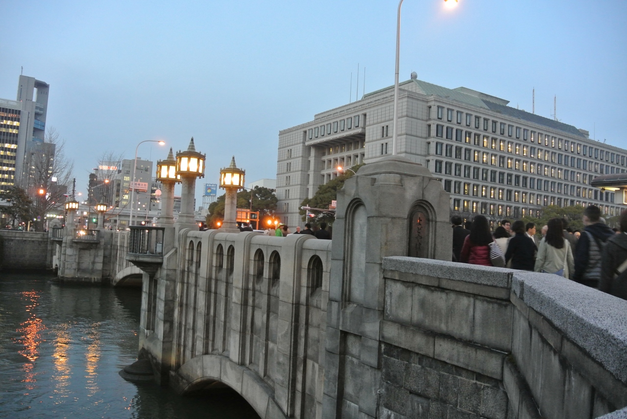 今では地名にもなっている淀屋橋ですが、現在の橋はコンペでデザインを募集し、昭和10年に竣工したものです。大阪は川や運河も多く、個性的な橋も多く架かっています。淀屋橋は橋に街灯が付けられており、夜になると灯りがともり川面に美しく映っていました。