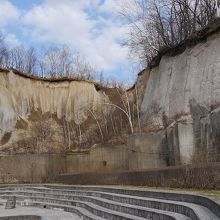 真駒内から滝野すずらん丘陵公園の途中にある公園緑地。かつて建材に用いられた札幌軟石の採石に利用されたところだそうで、石切りのあとが独特の景観を作り出していた。広々とした敷地の割りには人影はあまり多くなく、落ち着いた雰囲気だった。