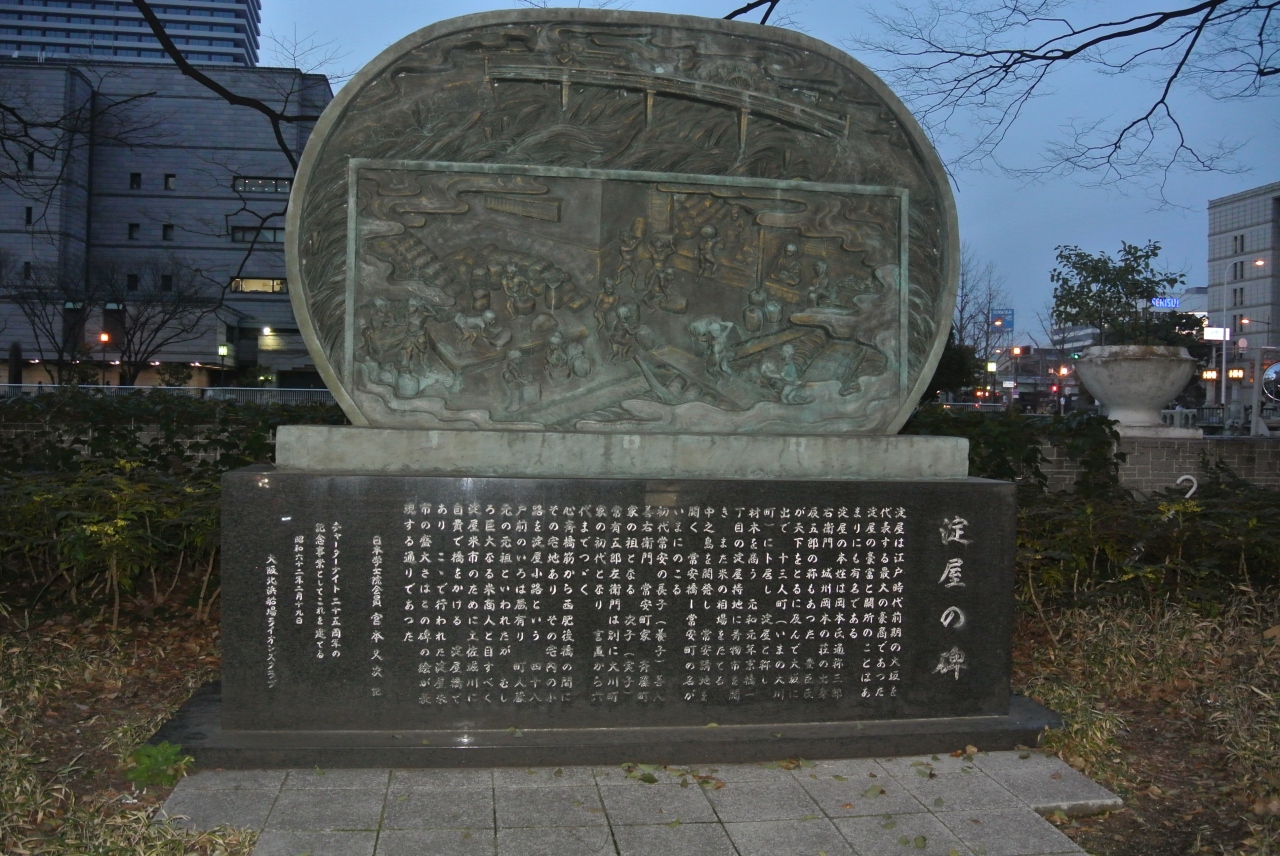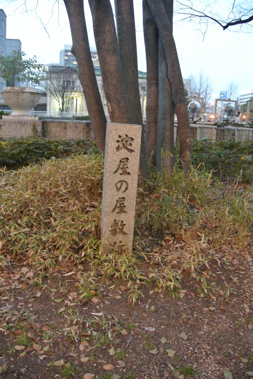 淀屋橋の南詰を西に行ったところになかなか立派な碑が建っていました。幕府が財産を没収して大名の借金をチャラにしたというのは有名な話ですが、財産没収前にのれん分けをしてもらっていた番頭がまた大阪で店を淀屋として再興したそうで、それは明治以降まで続いたそうです。
