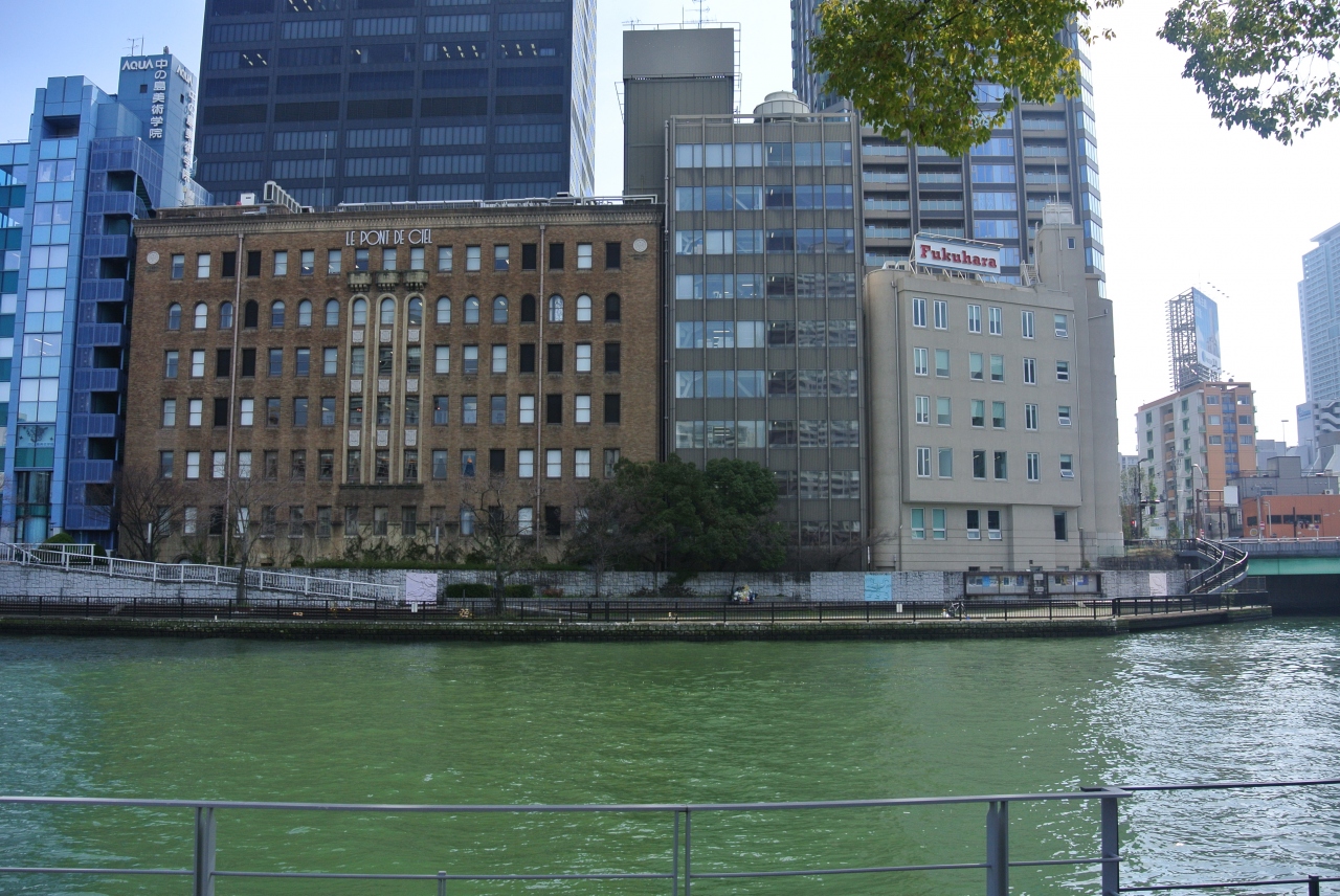 大林組の旧本店ビルですが、一時は料理学校として使われ、今はフランス料理店となっています。スパニッシュ風の美しい外観を持っています。土佐堀川のほうから川越しに見るのもおススメです。一軒おいて隣にあるモダン建築のフクハラビルと並んで建つ景観は絵になります。