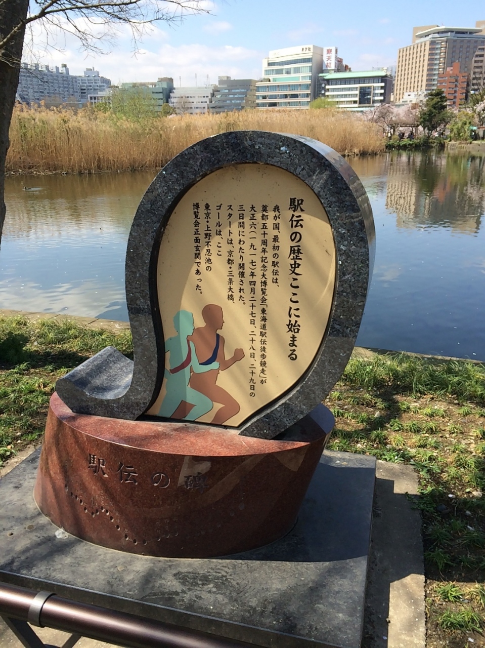なんでも日本初の駅伝のゴール地点は不忍池だったことを記念する碑とのこと。しかも駅伝のスタートは京都の三条大橋であり、23区間、約508kmにもおよぶ大会だったんだとか。スケールが大き過ぎて驚いてしまいました。