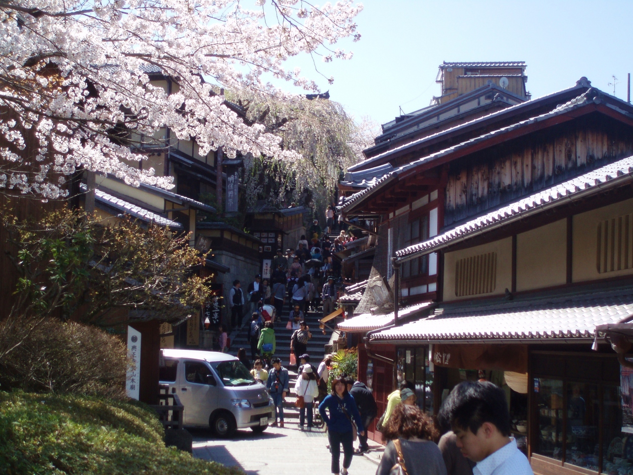 京都の清水神社で満開の桜を楽しんだあと、3年坂で昼食をとろうと思い訪れました。