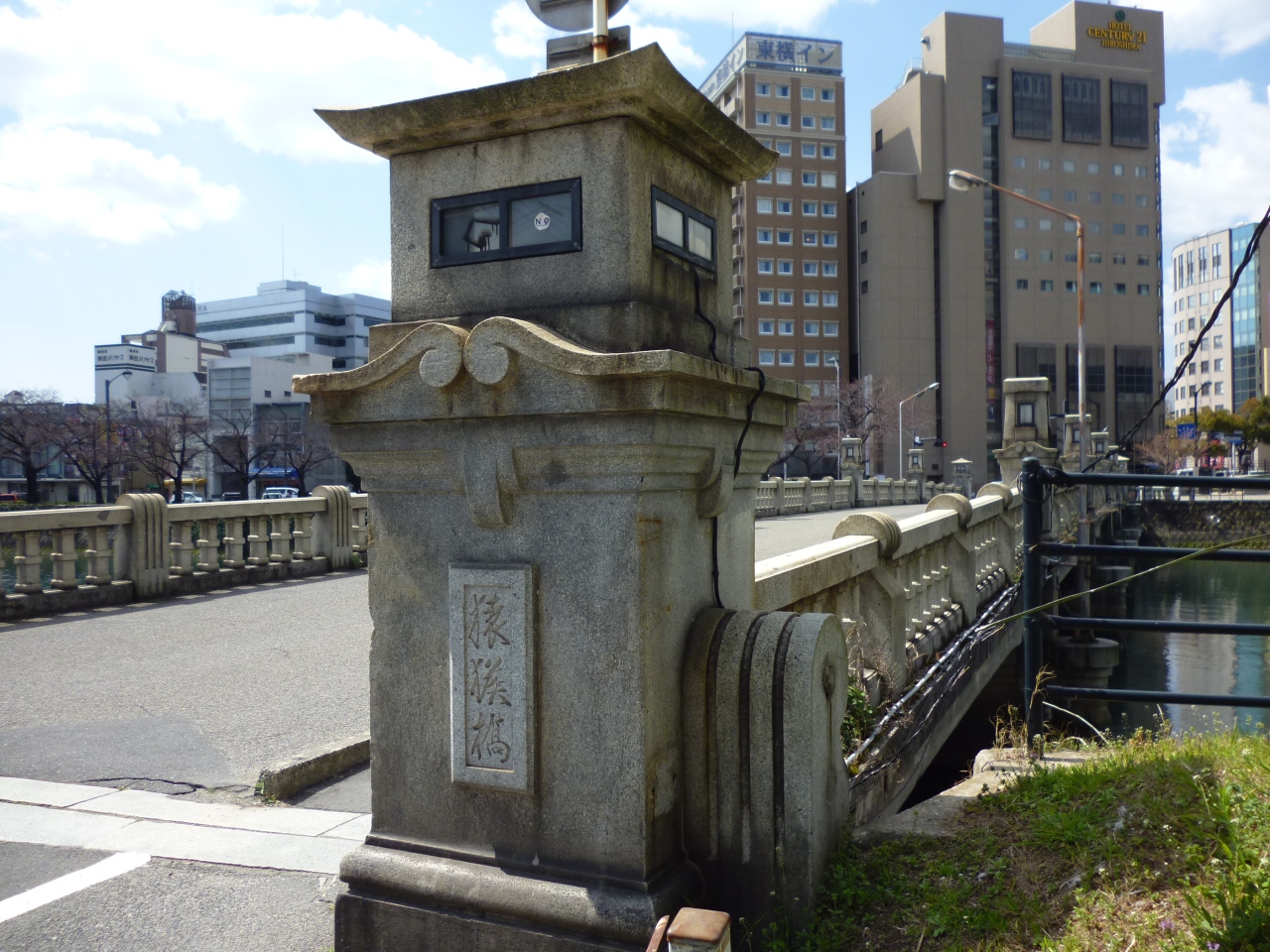爆心地から2キロという近さにあっても、崩れなかった橋です。大正ロマンのあふれる、懐かしい感じがする橋でした。新しい駅前大橋の下をくぐって、散歩道がつながっていました。近くには、被爆しても壊れなかった水管橋のモニュメントもありました。