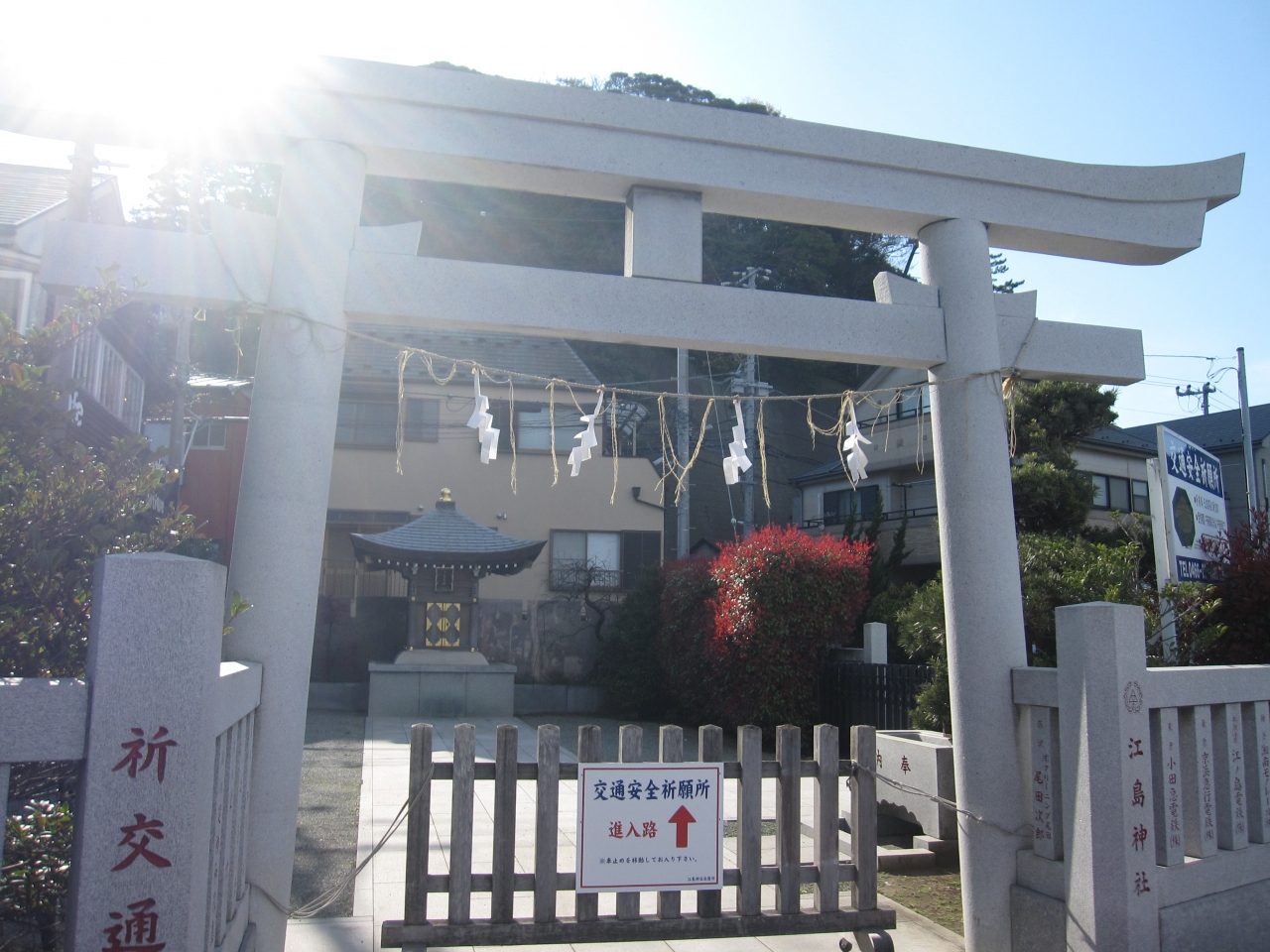 有名なのは、江ノ島に入ってまっすぐ山方向に進んだところにある辺津宮・中津宮・奥津宮ですが、
