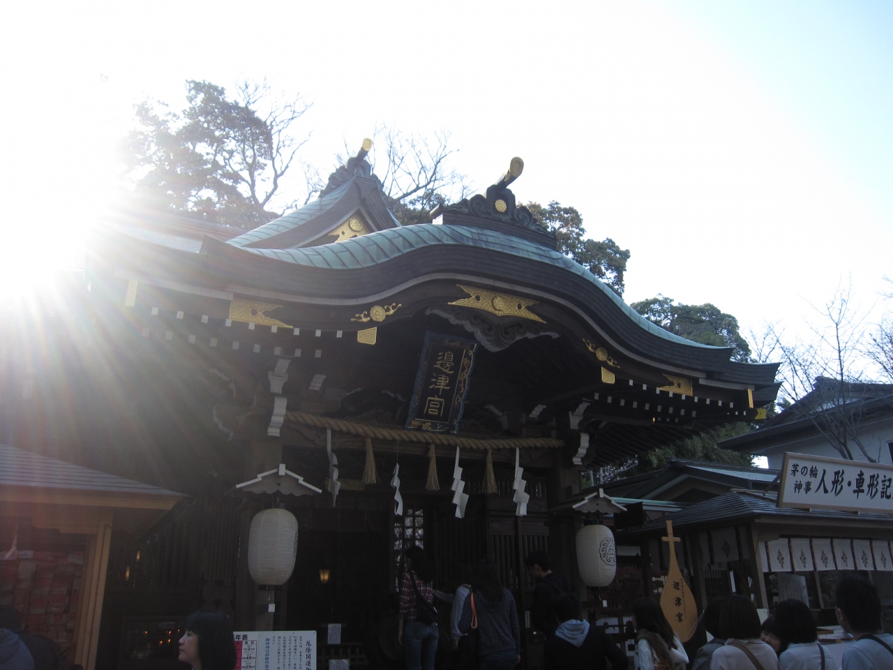 土日になるとすごい行列になっていて、辺津宮が見えてくる前の階段にも行列が出来ています。