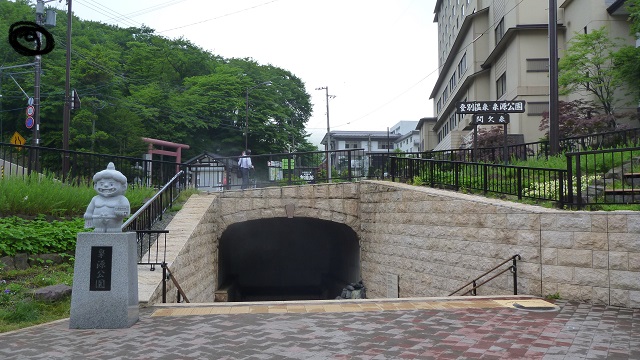 登別温泉街に位置する観光スポットの一つ。道路下のトンネル状になっている部分に間欠泉の噴き出し口があって、3時間ごとに約50分間間欠泉が噴き出すようになっている。噴き出していない時でも硫黄臭が立ち込めていて、温泉場にきているという雰囲気を感じさせられる。