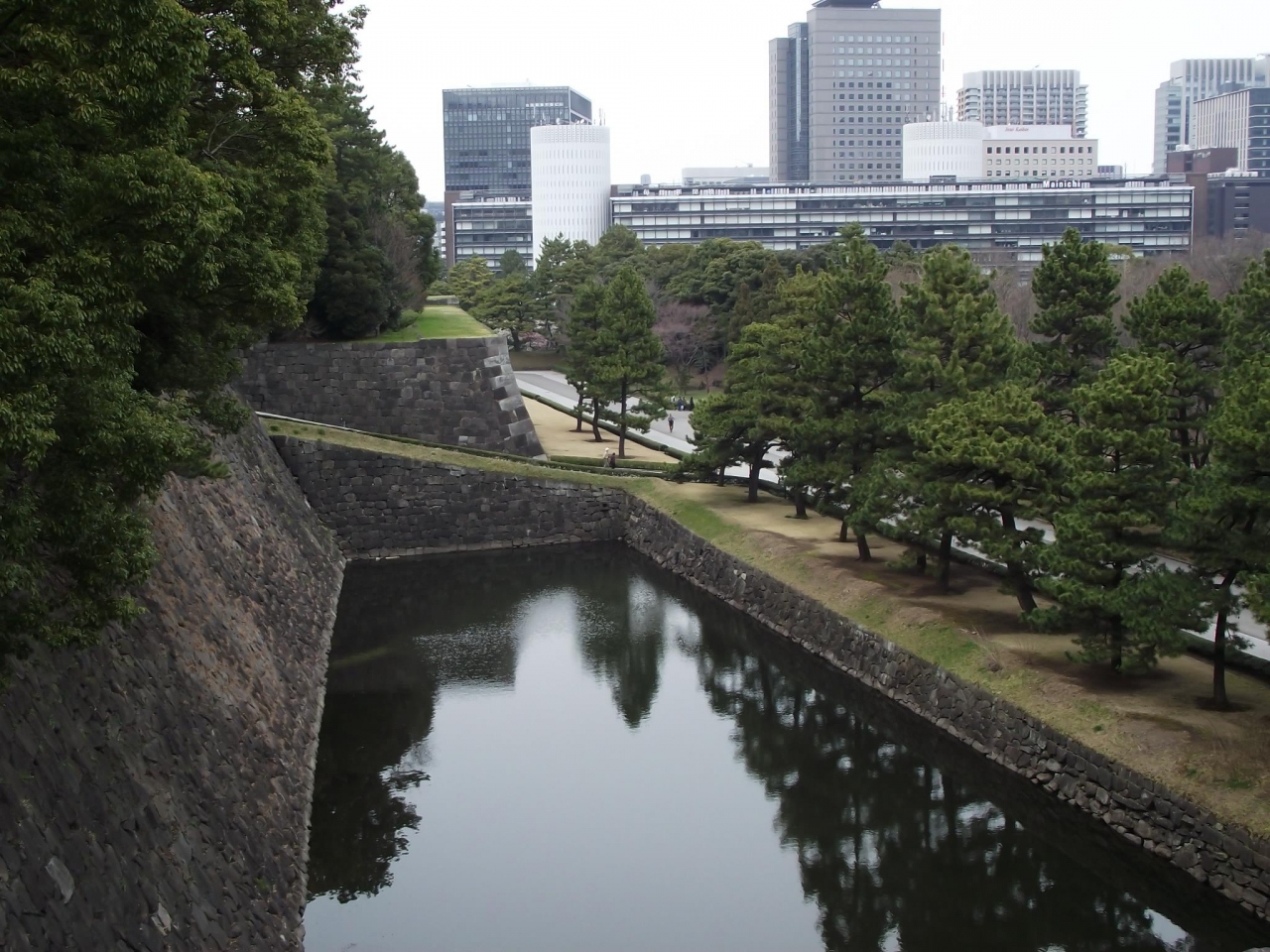 皇居東御苑で、他と繋がっていない濠です。 そのためか、水面には何も見当りませんでした。