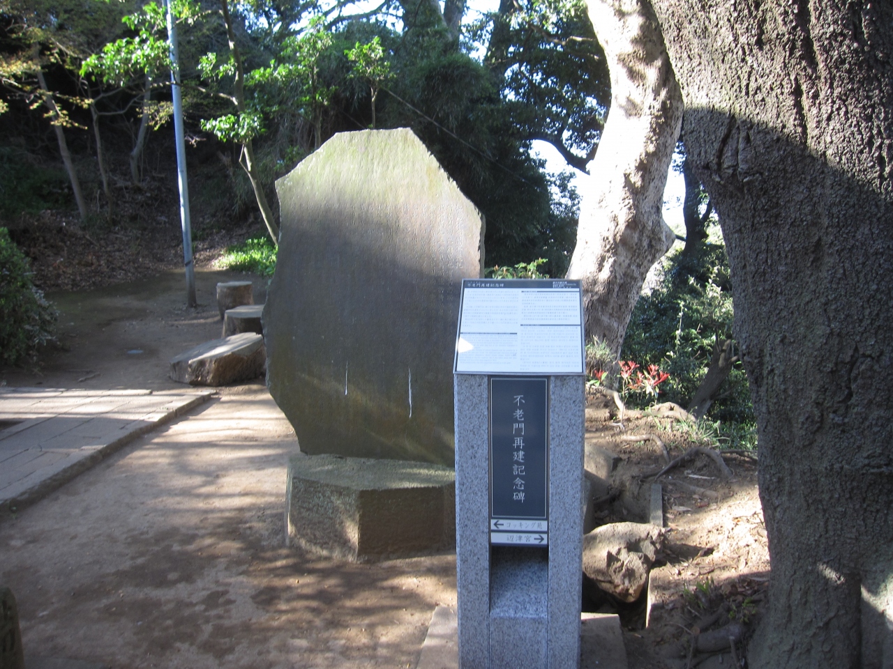 『不老門』を再建した記念碑のようですが、再建後に不老門自体が取り壊されてこの記念碑だけが残されているようです。