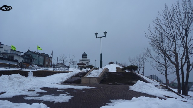 釧路駅から幣舞橋を渡ってさらに徒歩約20分のところにある公園。公園は小高い丘のようになっていて、階段を上った先に展望台がある。展望台からは釧路港や太平洋、釧路の街並みを見下ろすことができて、見ごたえのある風景。冬の季節、晴れの日が多い中、天候が不安定だったのが残念。
