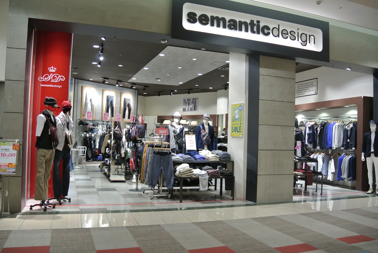 メンズファッションのお店で三階にあります。色合いは黒、白、紺、グレーと言ったところが中心ですが、小さなところにちょっとしたデザインの工夫があって、それが洋服に表情を持たせています。全体的に落ち着いた感じです。
