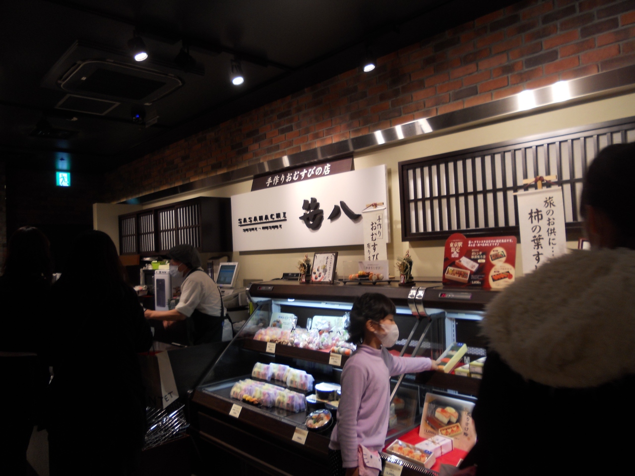 東京駅地下の「グランスタ」の中にあります。海外旅行の帰りに、帰りの新幹線でいただくために家族分で購入しました。日本のお米が食べたくておむすび目当てに入ったのですが、「柿の葉寿司」「焼き鯖寿司」などもありました。さすが、おむすびの専門店とあって、お米がとても美味しかったです。
