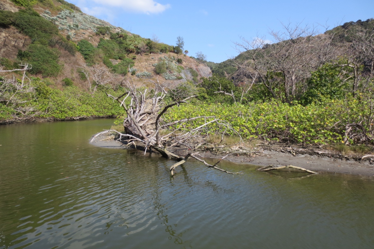 オオハマボウの群落、固有種のオガサワラヨシノボリやテラピア、オオウナギが生息しています。