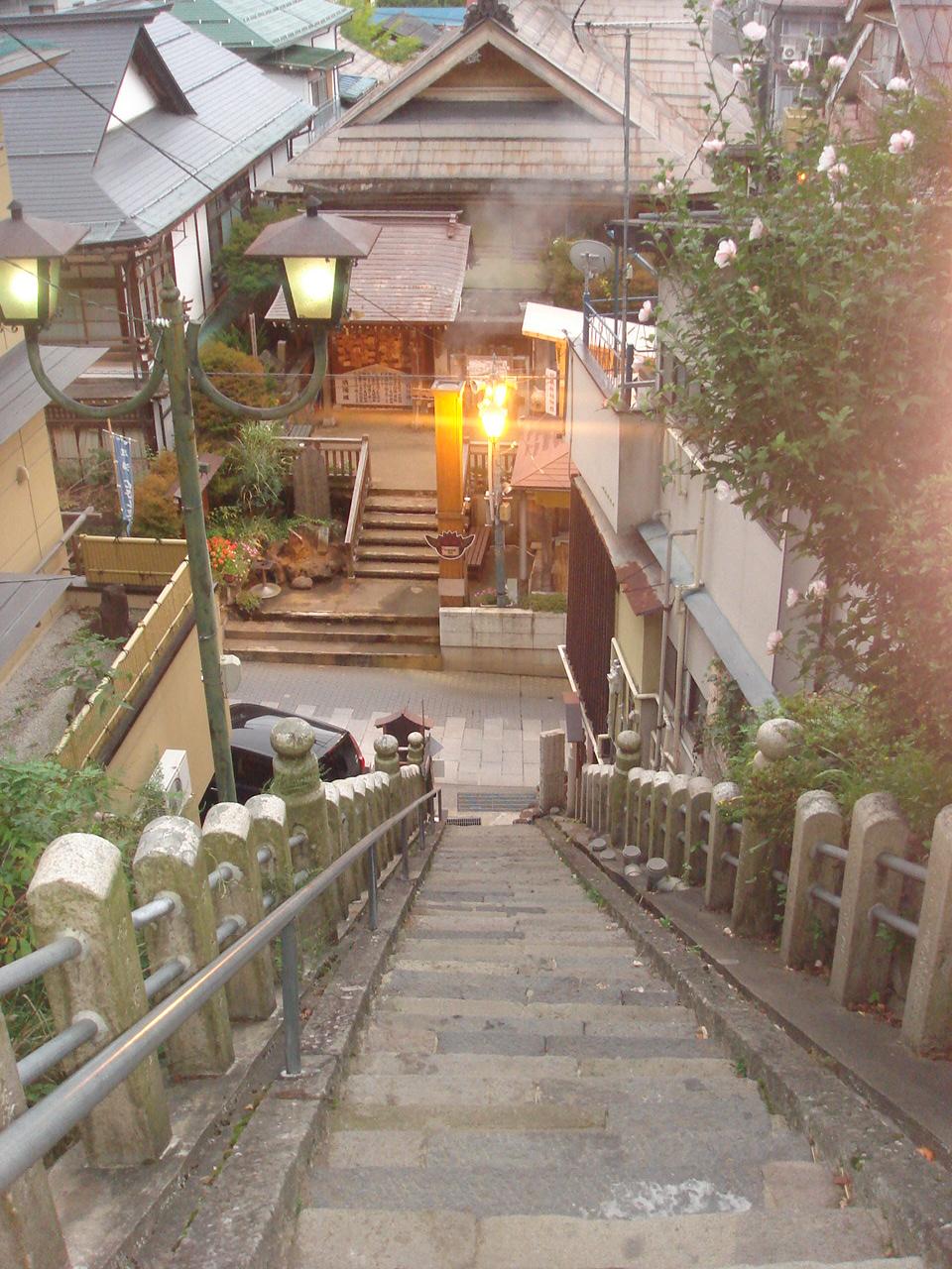 渋温泉九湯めぐりを終えたら、渋大湯の向かいにある、渋薬師庵へ行きます。最後にこちらでお参りすると、満願成就するそうです。長い階段を登っていき、手ぬぐいにスタンプを押してきました。高台からは、渋温泉街を見渡せます。