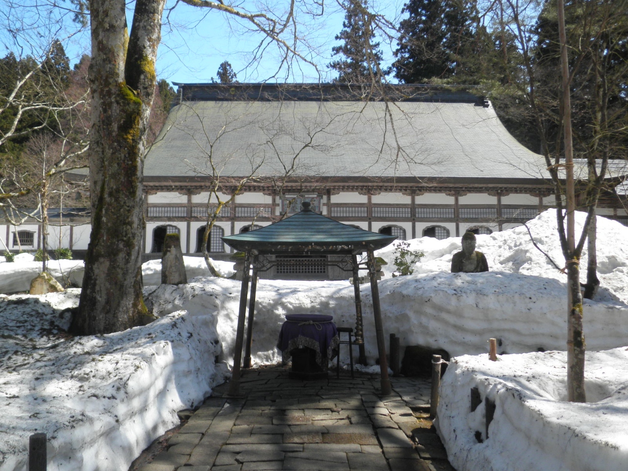 この前の木曜(4月2日)に南魚沼に18きっぷで日帰り旅行に行った際に立ち寄りました。塩沢駅からは5キロほどあるので、徒歩での移動は断念して隣の六日町駅から、レンタサイクルを借りて訪問しました。平日のためか非常に来訪者が少なく、落ち着いてり参拝ができました。本堂は外から見ると静かな雰囲気で、見ていて気持ちが落ち着きました。ただ、本堂内はそれなりに煌びやかで、柱の青色の文字がまぶしく感じられました。参堂には一字一石法華経がしたためられているらしいく、それを踏みしめてお参りするとご利益があるそうです^^。ただ、日当たりがあまりよくないためか、苔が生えていて滑りやすいので歩く際は注意が必要でした。他にも座禅堂や観音堂、客殿なども見て回れます。残念ながら、時間の関係で宝物殿は寄れませんでしたが、次に行った時は必ず見学したいです。拝観料は300円でしたが、それ以上の価値のある寺だと思います。