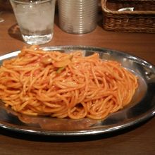 朝は日替わりサンドイッチ、夜はハイボールのお店で、ランチタイムはナポリタン一本勝負。具はソーセージ、ピーマン、玉ねぎ、マッシュルームというシンプルなナポリタンだがおいしい。ただ、量が普通盛りでも多く、いくらおいしくても途中でちょっと飽きてくる感じ。始めからタバスコやチーズは入れずに途中から入れたほうが良いかも。