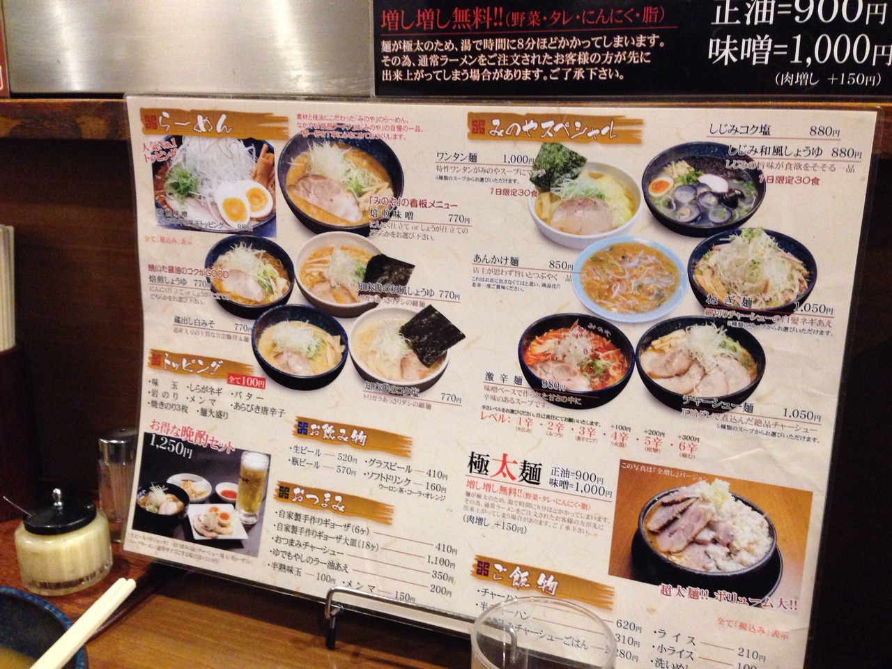 すすきののラーメン「みのや」さん。味噌ラーメン¥770をいただきました。とっても濃厚で女性にとってはかなりのボリューム!でも深夜に寒い中入店したので体も温まり大満足でした。次回はもっとお腹を減らしてから行こうと思います(^^)