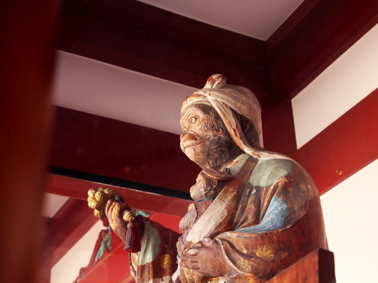日枝神社の神の使いは猿であり、狛犬の代わりに夫婦の猿の像が安置されている。