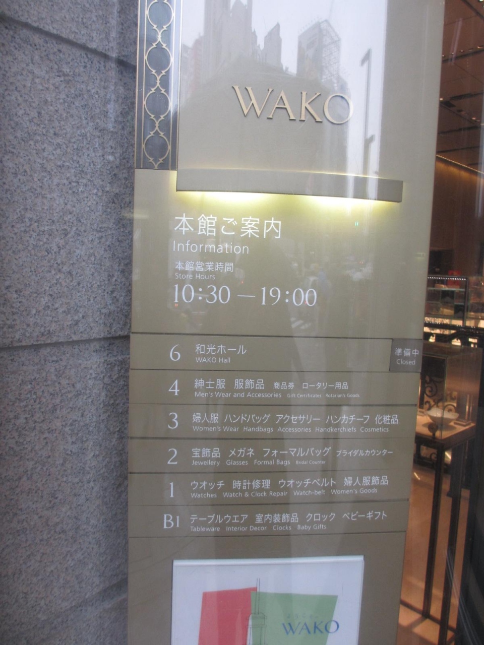 銀座4丁目の晴海通りと中央通の交差点、三越の向かいにあります。時計と風格のある建物は銀座のランドマーク的な存在です。三越や松屋と比べると、重々しさを私は感じています。6階に和光ホールがあり、定期的に展覧会が開催されるのが楽しみです。