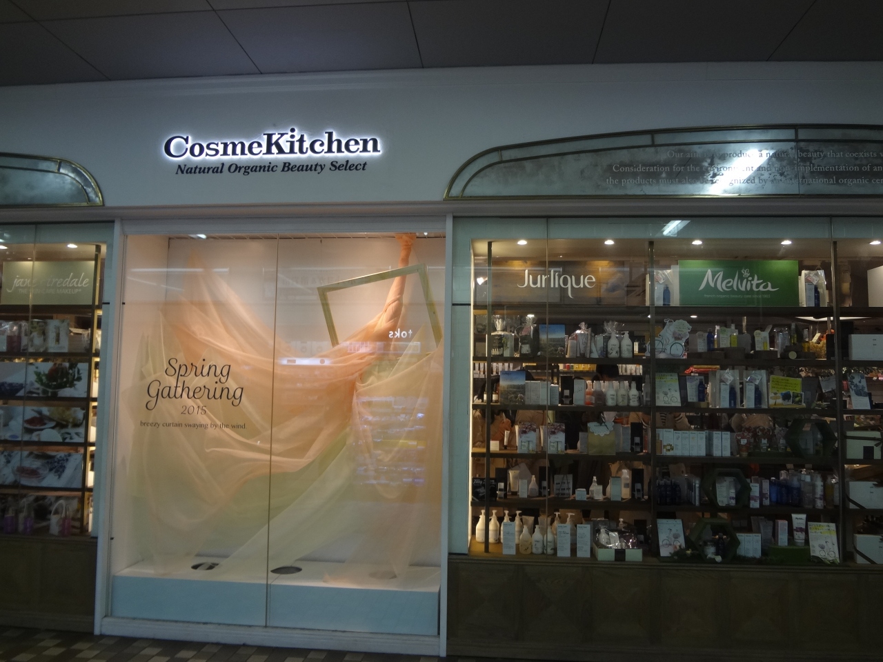 コスメキッチンというお店はチェーン店だと思いますが、代官山店は改札を出てすぐ、駅直結の抜群のロケーションです。この手のお店が改札すぐの場所にあるというのは、いかにも代官山らしいです。待ち合わせ場所としてもしばしば利用させてもらっています。