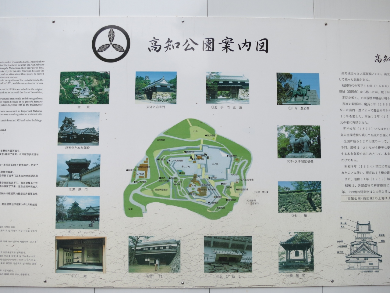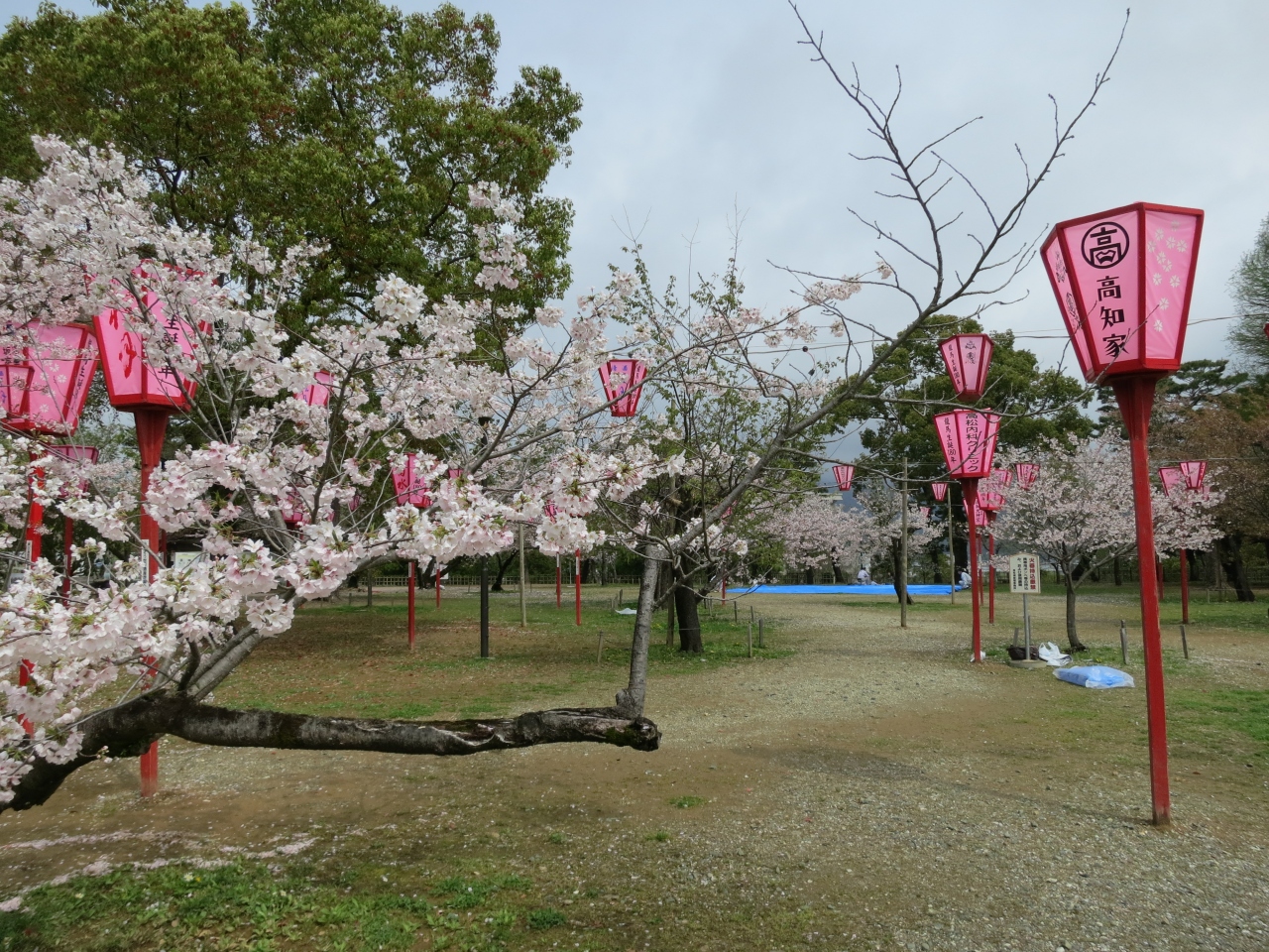 山内一豊が築城した高知城を中心に形成された歴史公園です。城跡全域が国の史跡に成っていて、天平閣、追手門、納屋蔵、懐徳館15棟が現存し、国の重要文化財となっています。「高知城花回廊」が開催された週末の昼間に家族で遊びに行きました。高知公園は桜が満開で、「高知城花回廊」のイベントで生け花も沢山生けられていて、歴史あるお城とともに楽しめ、大変風流で、美しかったです。高知の有名なお花見スポットの1つです。