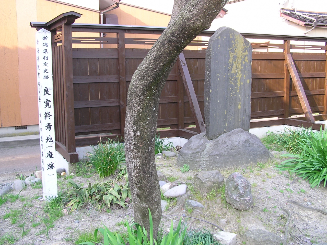 木村邸内に庵跡を示すモニュメントと、「良寛禅師遷化之地」の碑がある。