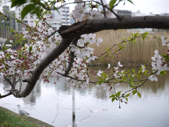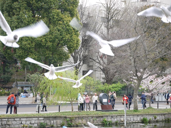 花見も終番となりましたが、ここ不忍池には出店も出ていてまだまだ賑わっていました。この池では渡り鳥や留鳥で100種類ほどの野鳥が観測されていて、以前はキンクロハジロ・オナガガモが多く見られたが最近はカモメが多く飛来しています。