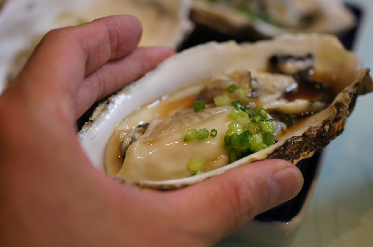 野菜、鮮魚、肉コーナー、食堂がありますが、鮮魚コーナーではご飯と共に試食させてくれたり、見た事もない巨大な牡蠣があったりして面白い。