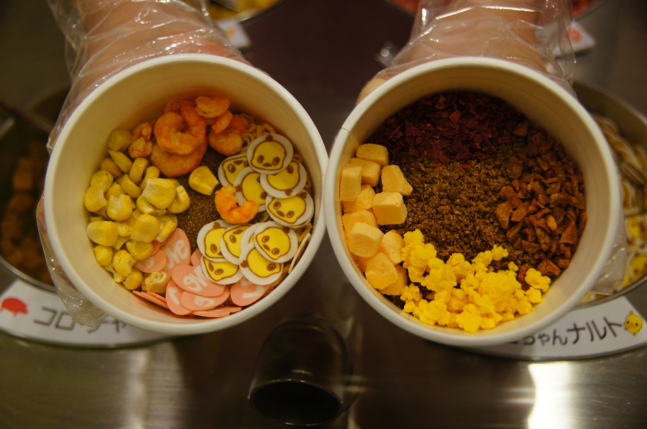 入場料とカップヌードル作りは別料金(300円)。しかも、ごはんを作る場合は別の場所での支払いとなっており判り難いし面倒。しかしながら、ラベルを書いたり、具を選んだりと楽しい作業です。