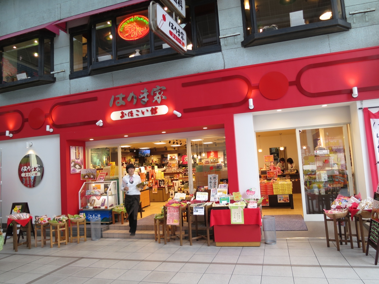京橋商店街の入口にある、高知の土産物全般が揃うお店です。京橋商店街の入口両側がはりま家になっていて、はりま家京町店と土佐こい館があります。はりま家京町店の前には、とさけんぴ犬の顔をはめて写真を撮るパネルがあったり、はりまや橋をわたる大きなキティちゃんがいたり、子どもたちにも人気のお土産屋さんです。すぐ近くにはりまや橋があるので、はりまや橋観光の際には寄りたいお店です。高知の土産菓子から特産品、お酒、土産物グッズまで品揃え豊富で、高知を代表する美味しいものも揃っています。