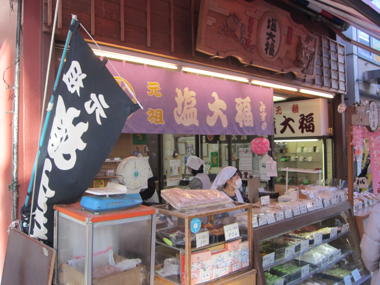 巣鴨名物でもある塩大福の「元祖」がここの店になります。塩大福を扱う店はたくさん地蔵通り商店街にありますは「元祖」ということでここで購入しました。
