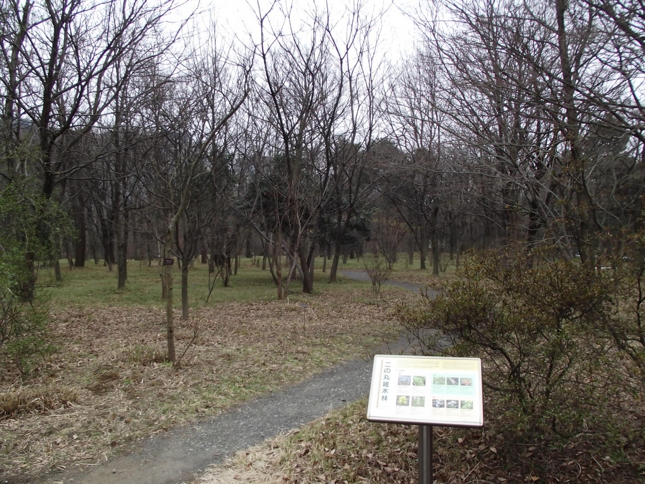 この雑木林は、皇居東御苑内の二の丸の本丸 (西) 側に、広がっているところです。