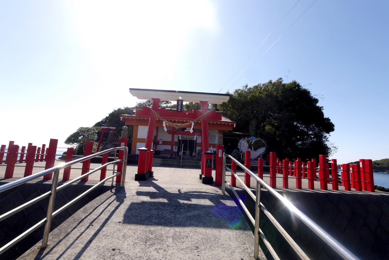 頭に蓋をのせて,鳥居から,拝殿まで落とさなければ願いがかなうと.ここも周りの海がきれい.とくに集落側(西側)の砂浜は絶品だ.開聞岳も良く見える.もとは武人で,ここに祈ると無事に帰郷できるといわれた.素戔嗚の尊が祀られる.駐車場はある.しかし国道226号線からはわかりにくい.私は道に迷った.大川の集落の東側にあたる