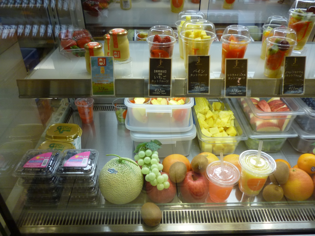岡山は、果物がおいしい県です。デパートの地下のジュースがもいしいので、観光の方にもお勧めします。カウンターには、果物がずらりと並んでいます。注文してから、一杯ずつ作ってくれます。ベジタブルとのミックスもあって、ヘルシーです。