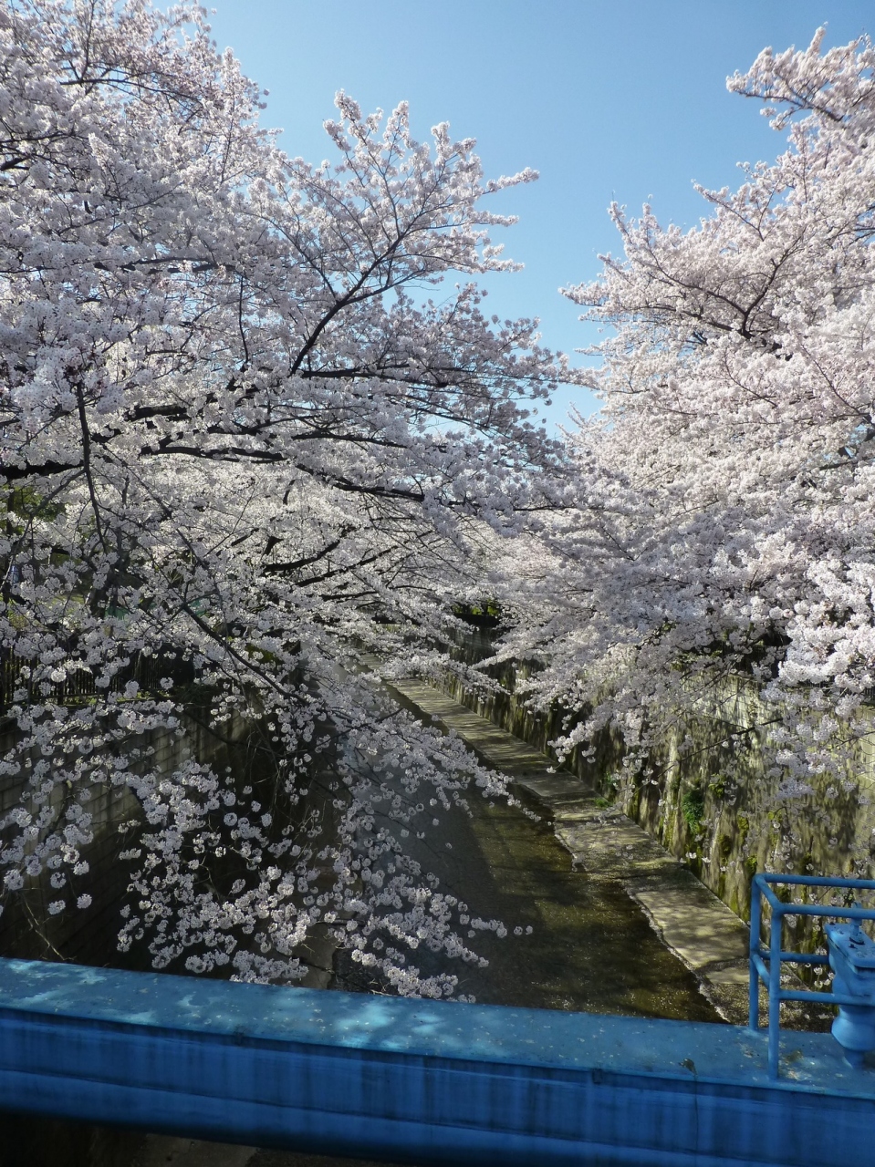 所々ある橋から見る桜は手が届きそうどころかまさに目の前。