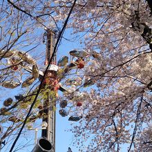 園内のあちこちに桜があって、満開の桜はきれいでした。