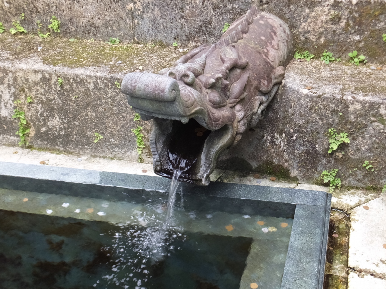 守礼門側から首里城正殿に登っていく途中にある、瑞泉門のすぐそばにあります。通りからちょっと外れて低い場所にあるので、ぼんやり歩いていると見逃してしまうと思います。登る方向の右側をよく注意していてください。