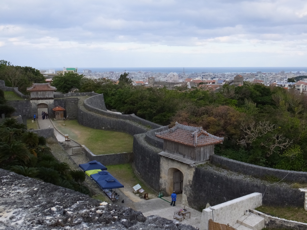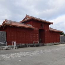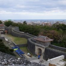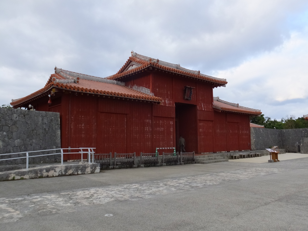 守礼門から首里城正殿に登ってくると最後にあるのがこの門です。建物と一体化した立派な門になっています。ここで見逃せないのは、門の外側にある広場からの眺めです。高台にあるので海まで広がる広大な景色が楽しめます。