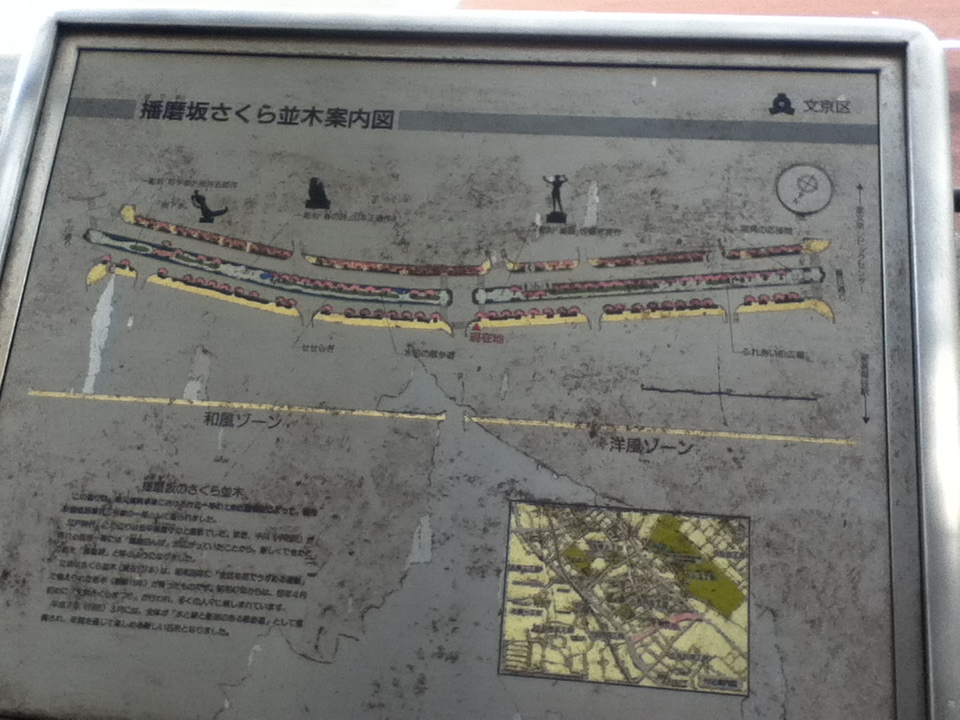 地下鉄茗荷谷駅の東、春日通りの小石川五丁目交差点から東へ下る坂沿いにある。坂は広く、両側及び中央分離帯に桜の木々たかなり密に並んでいる。また途中には、カラーの桜並木に関する案内板も立っている。桜の季節に綺麗なのはもちろんのことであるが、秋でも緑が豊富で散歩を静かに楽しめるので訪問することをお勧めする。