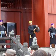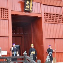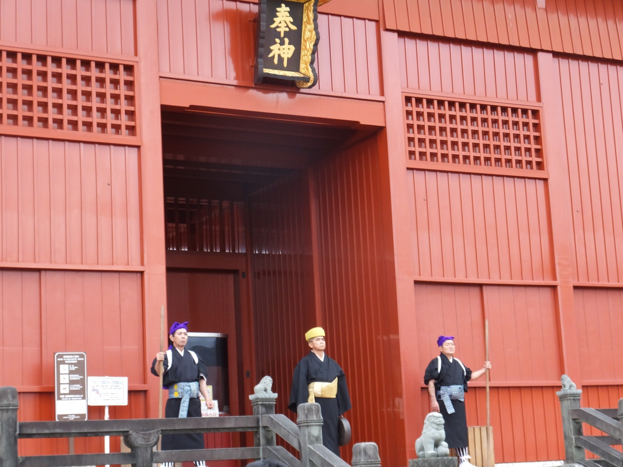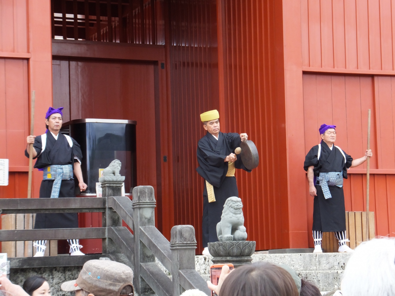 首里城正殿に入る最後の門で、ここから有料ゾーンになります。朝の開門時には、開門儀式のパフォーマンスが行われているので、開門時間より前に到着しておくのがお勧めです。この時、チケット購入は後でもいいので、まず儀式の見学を。