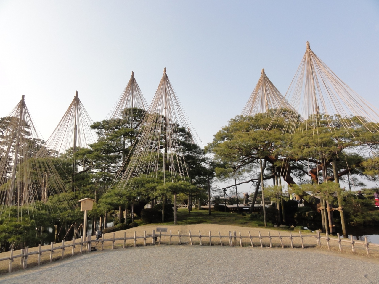 若いころに個人で行きましたが、今回はツアーで行ったのでお土産物屋さんの案内が付きました。雪吊りの木や池、銅像、噴水、兼六園の成り立ちなど説明を聞きながら30分、その後30分のフリータイムでしたが正直、時間不足でした。パンフレットだけで回るよりは充実してましたが、今度はお花の綺麗な季節にゆっくり行きたいと思いました。新幹線開通後の平日でしたが思ったより混雑もなく、閑散とした感じでした。雪もなく、花もなく、雪吊りが印象に残りました。