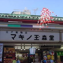 浅草寺の門前にあって、多くの観光客を集める「仲見世商店街」にあるお店。狭い店内にぎっしりグッズが並びます。オリジナルの千社札を作ることができるので、浅草らしい土産としてはかなり喜ばれそう。外国人の方も多かったです。