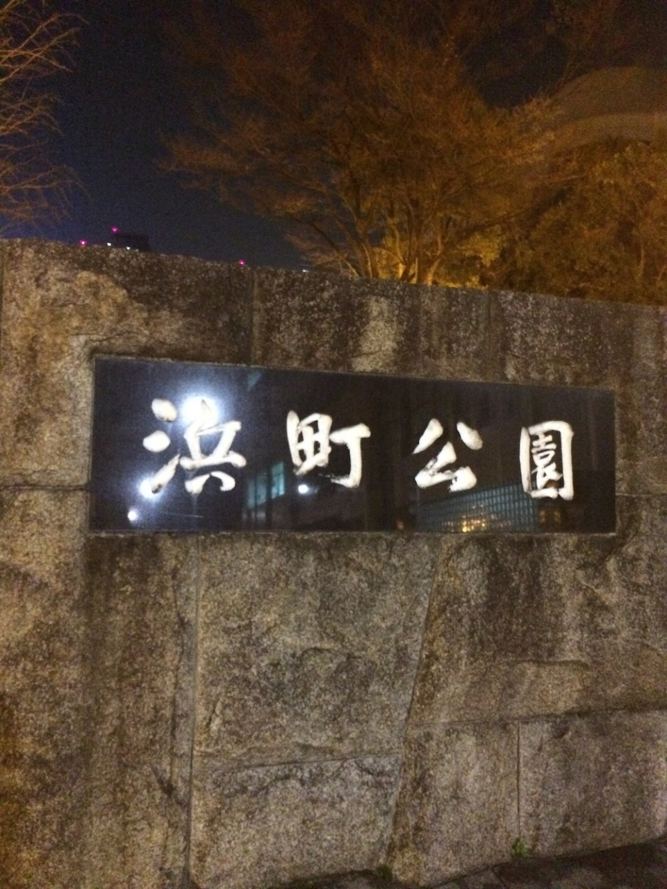 都営新宿線浜町駅2番出口(エレベーターがあります)を出れば、そこが浜町公園。都心立地だけに、それほど、大きな公園ではありませんが、この時期は桜の名所として有名です。とはいえ、あまり混雑しないので、お花見の穴場的な公園です。