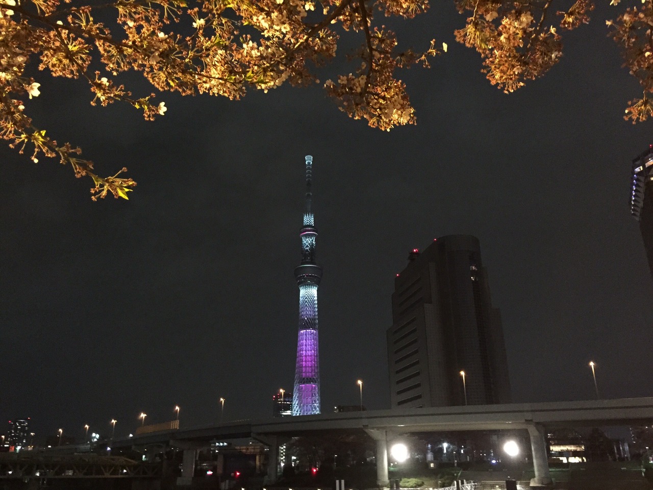 それでもせめて夜桜越しのスカイツリーを眺めようと隅田川河畔に来ました。それなりに今の季節しか見られない景色を家内、娘と堪能した次第です。